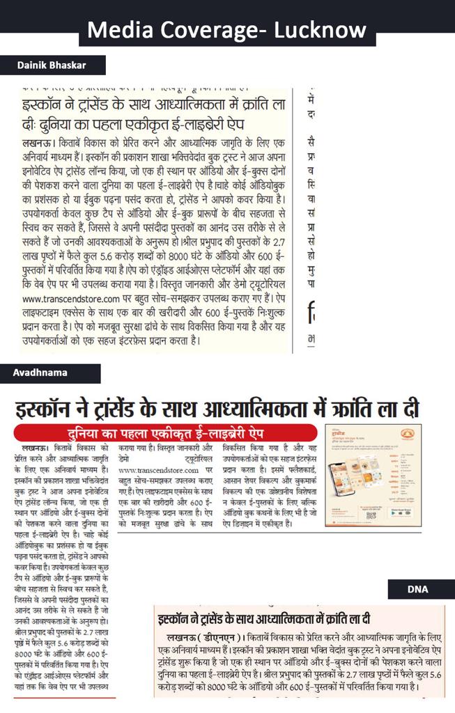 Books are an indispensable medium for catalysing growth and spiritual awakening. ISKCON’s publishing wing the Bhaktivedanta Book Trust launched their innovative App “Transcend” which is the first e-library app in the world to offer both audio and ebo...