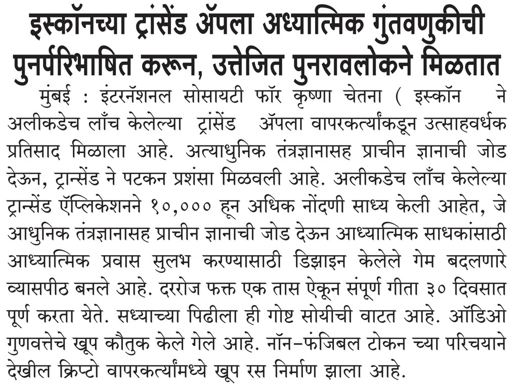 In a landmark development that is set to reshape the way individuals engage with spirituality, the International Society for Krishna Consciousness (ISKCON) unveils its groundbreaking mobile application "Transcend." This innovative platform marks a hi...